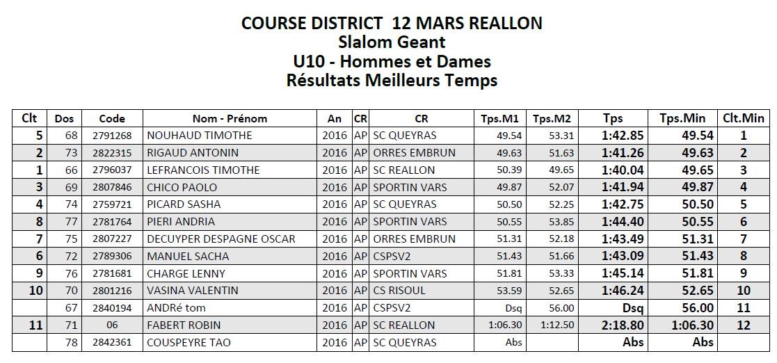 Il faut noter aussi que Ski Club Reallon est le club qui est le plus représenté lors de ce championnat fédéral avec 11 concurrents engagé.