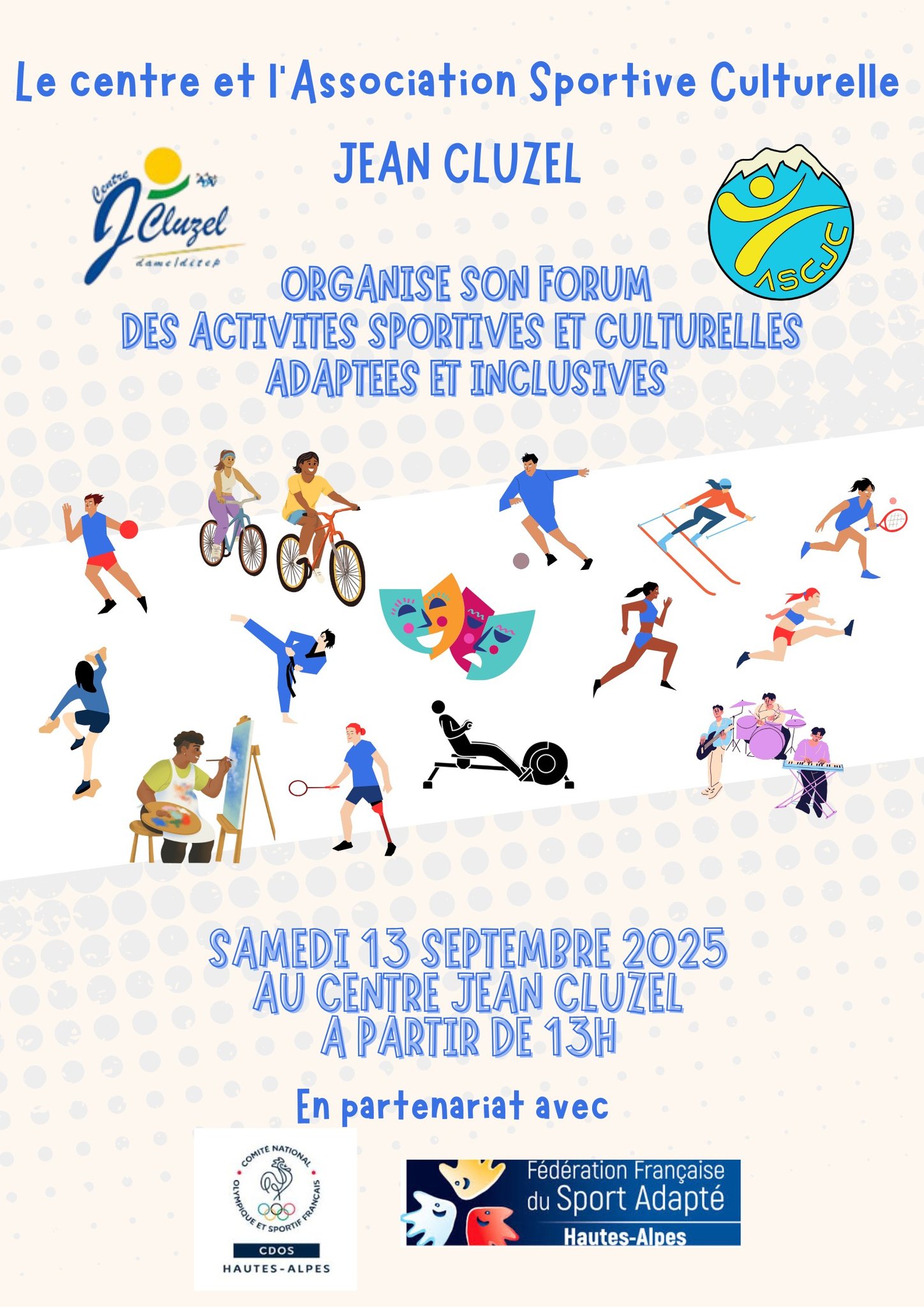 Nous serons présent au forum des activités sportives et culturelles adaptées et inclusives organisé par le centre et l'association sportive culturelle Jean CLUZEL.